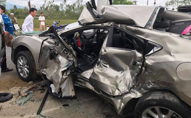 Tại hiện trường, khoảng gần 10m dải phân cách cứng giữa đường bị hư hỏng. Chiếc xe con bị biến dạng, hư hỏng gần như hoàn toàn. Do xe bị bẹp dúm 2 bên đẩy vào giữa đã khiến nữ tài xế xe bị mắc kẹt bên trong. Riêng người phụ nữ đi cùng ngồi sau nên thoát được ra ngoài.