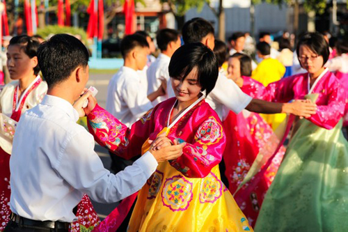Hành trình Triều Tiên của Erick Tseng may mắn đúng ngày lễ lớn của đất nước này. Người dân tổ chức buổi nhảy đồng diễn trên toàn quốc. Ước tính hơn 1.000 người tham gia. Hầu như du khách khác e dè nhưng nhóm của Erick lại vui vẻ cùng nhảy với mọi người. Ảnh: Huffington Post |