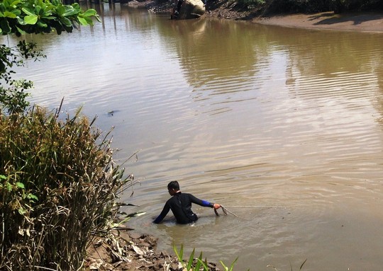 Người nhái lặn tìm cụ bà 73 tuổi mất tích trên sông Rạch Chiếc. Ảnh Người Lao Động |
