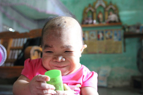 | Dù đã 27 tuổi những chị Dung chỉ trông như một đứa trẻ lên 2. Trong ảnh là Dung với người cháu ruột năm nay 9 tháng tuổi. |