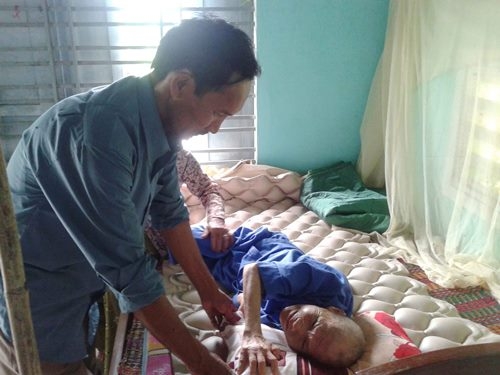 | Anh Nguyễn Nhứt (đứa cháu trai duy nhất của bà Ân) đang chăm sóc cho người cô đã thất lạc thông tin gần 50 năm |