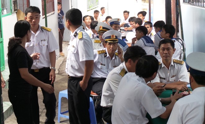 Các chiến sĩ hải quân có mặt tiễn đưa đồng đội hi sinh.