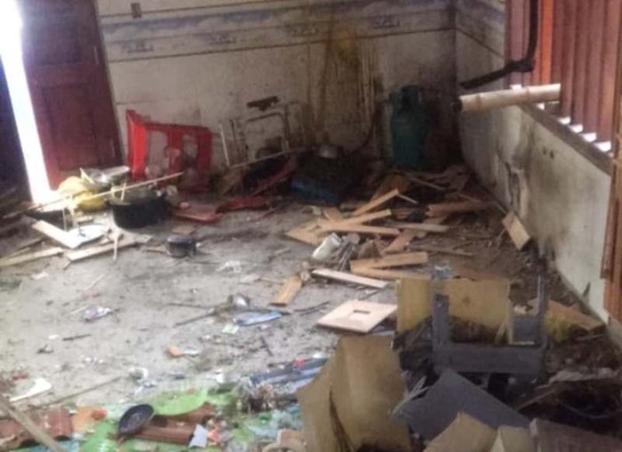 Sau tiếng nổ, nhiều vật dụng ở phòng bếp của gia đình ông Trần Xuân Lục bắn tung tóe, hư hỏng. Rất may, thời điểm xảy ra vụ việc, những người trong gia đình đều nằm ngủ ở nhà trên nên không ảnh hưởng đến tính mạng.