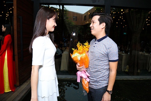 Dù đang quay phim tại Đà Nẵng nhưng Nhã Phương vẫn giành thời gian tới chúc mừng Trường Giang. Ảnh: Khám phá |