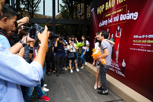Sau sự kiện, cặp đôi khá tình cảm cùng nhau chụp hình. Trường Giang cho biết anh không muốn lợi dụng chuyện tình cảm để PR cho liveshow hay đánh bóng tên tuổi. Ảnh: Khám phá |