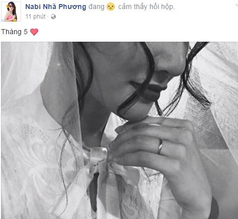 Nhã Phương chia sẻ hình ảnh đeo nhẫn, mặc váy cô dâu khiến không ít fan rộ lên tin đồn cô chuẩn bị lên xe hoa. |
