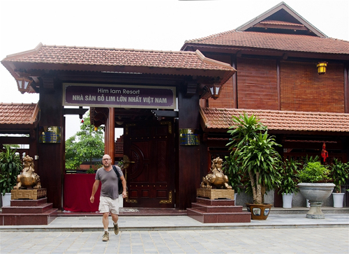 | Với tổng diện tích là 500 m2, nhà sàn 2 tầng nằm trong khuôn viên riêng biệt rộng 2000m2 và được làm từ 500 khối gỗ lim nguyên chất. |