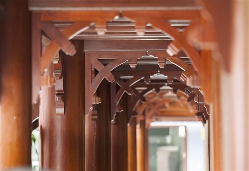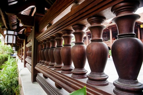 | Hàng rào bao quanh khuôn viên được làm thành các con tiện xinh đẹp đều đặn chắc chắn. |