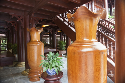 | Đôi lọ bằng gỗ Ngọc Am, loại gỗ cực kỳ quý hiếm. Theo giới thiệu của BQL, đây là đôi lọ gỗ Ngọc Am có kích thước lớn nhất tại Việt Nam. |