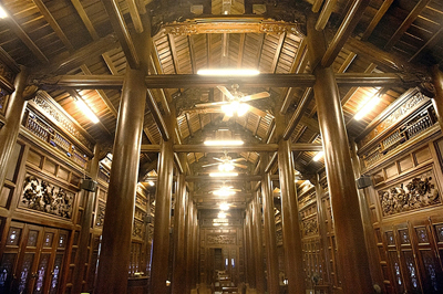| Với địa thế thuận lợi quang cảnh khuôn viên đẹp mắt không khí trong lành, nhà sàn gỗ lim lớn nhất Việt Nam đã và đang phục vụ các sự kiện lớn. |