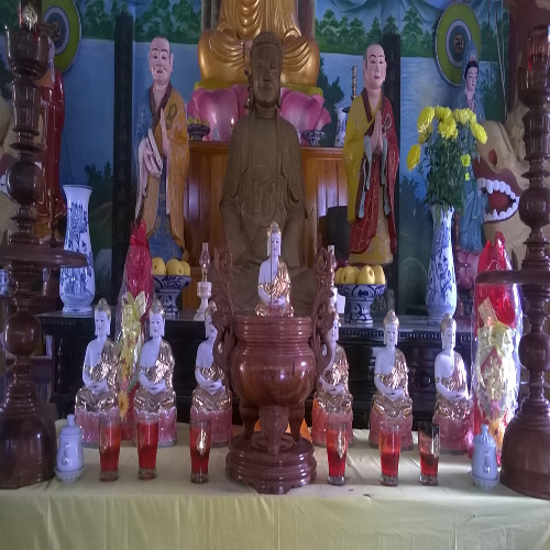 Tượng Phật kỳ lạ (giữa) được thờ cúng tại chùa.Chối mệnh vua để trùng tu chùa