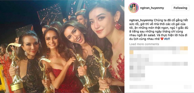 | Ngay sau đêm Chung kết, Á hậu cũng đã lấy lại tinh thần và đăng tải bức ảnh cùng hội bạn thân trong cuộc thi. |
