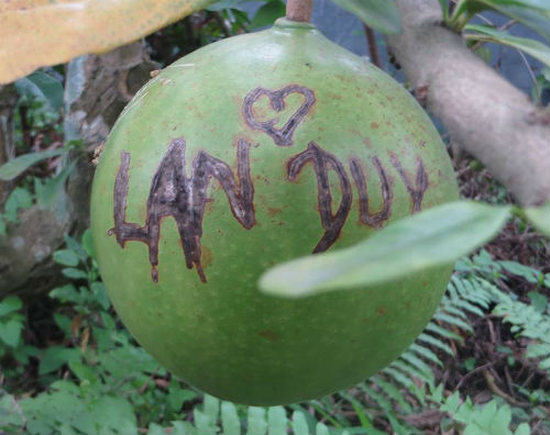 Bạn Quang Anh (Hà Nội) bức xúc: “Tại sao các bạn trẻ lại vào chốn linh thiêng để thể hiện tình cảm, viết bậy lên những quả đào tiên như vậy. Không hiểu ý thức của họ để đâu”.