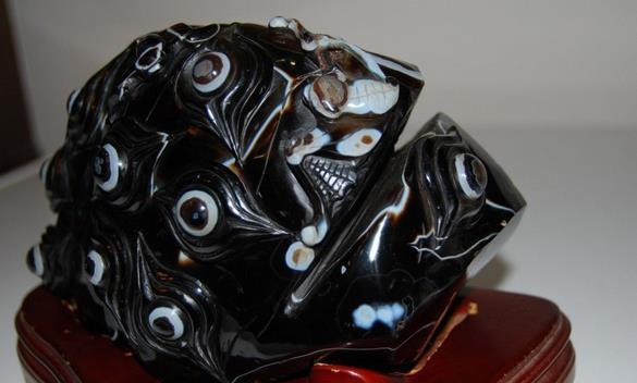Bề mặt hòn đá có rất nhiều hoa văn kỳ lạ, trông giống như mắt động vật. Cậu bé lập tức gọi nhóm bạn đến xem. Lần đầu tiên nhìn thấy hòn đá này, bọn trẻ đều giật mình sợ hãi, một số bạn kêu cậu bé ném hòn đá đi nhưng cậu không chịu.