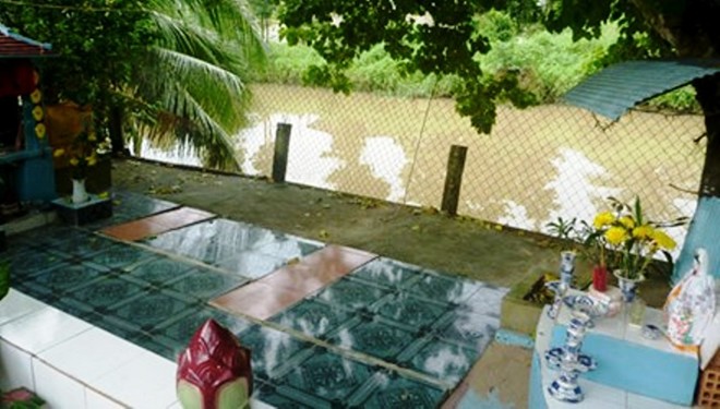 Hiện trường người thanh niên nhảy xuống sông sau khi vào miếu thờ cầu nguyện.