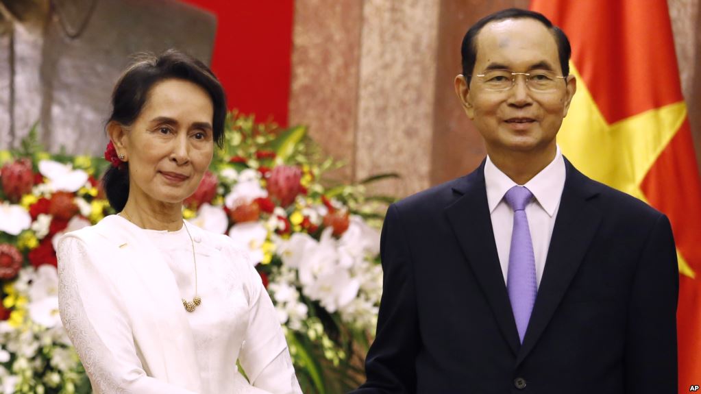 | Chủ tịch nước Trần Đại Quang tiếp bà Aung San Suu Kyi, Cố vấn Nhà nước Myanmar – Trưởng đoàn Myanmar tại Hội nghị Diễn đàn Kinh tế Thế giới về ASEAN (WEF ASEAN) tổ chức tại Hà Nội ngày 11-13/9/2018. Ảnh: TTXVN |