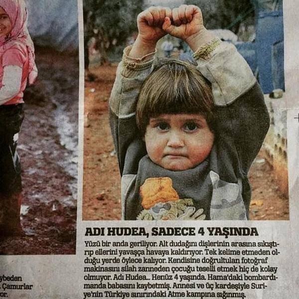 Bức ảnh đầy tính biểu tượng về cuộc nội chiến Syria này với chú thích "Cô bé giơ tay vì nghĩ rằng máy ảnh là một khẩu súng" ban đầu được in trên một tờ báo Thổ Nhĩ Kỳ, sau đó nó lan truyền trên diễn đàn Reddit rồi trở nên nổi tiếng và được Cộng đồng mạng ở Châu Âu và Mỹ chia sẻ rộng rãi trên mạng xã hội Twitter.