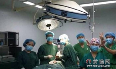 Một bác sĩ nắm ống truyền khi các bác sĩ khác vây quanh bệnh nhân còn bất tỉnh để chụp hình. Nguồn: qianzhan.com