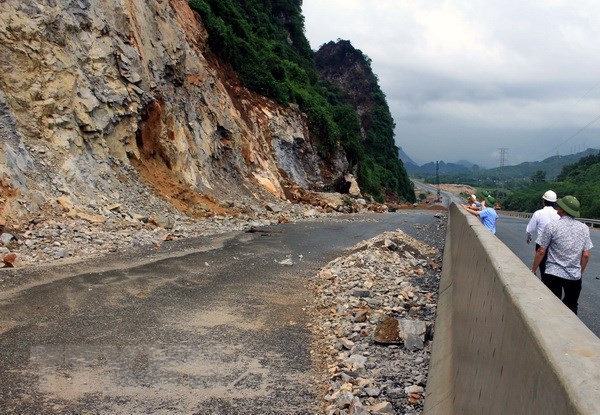 Tuyến cao tốc Hạ Long-Vân Đồn đang thi công. (Ảnh: Văn Đức/TTXVN) |