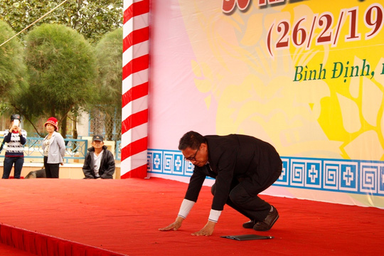 Giáo sư Roh Hwa Wook, Chủ tịch Ủy ban xúc tiến thành lập Quỹ Hòa bình Hàn-Việt quỳ xuống xin lỗi đến thân nhân của người dân vô tội trong vụ thảm sát nửa thế kỷ trước tại Bình Định. Ảnh: NLĐ |