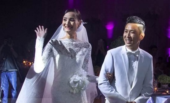| Thủy Tiên - Công Vinh hạnh phúc trong đám cưới. Ảnh internet |
