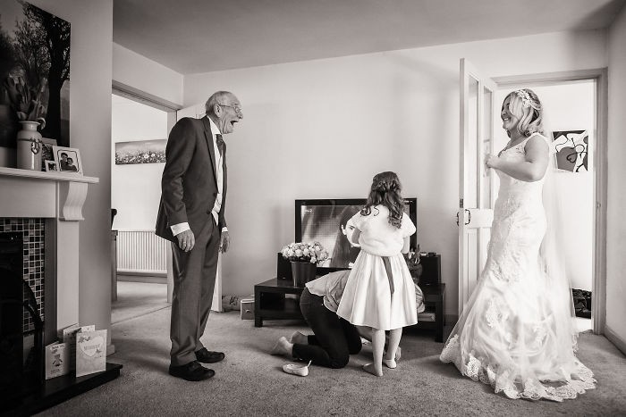 Dù người ta vẫn cứ nói rằng cha mẹ là những người yêu thương con gái nhất, thế nhưng mối quan hệ giữa bố và con gái dường như vẫn thường có những điểm nhấn đặc biệt hơn hẳn. Chúng ta đã từng xúc động nghẹn ngào khi chứng kiến bộ ảnh những chàng rể lần đầu thấy vợ mình trong tà áo cưới và phải cố gắng kìm nén những giọt nước mắt sung sướng và hạnh phúc; và mới đây tạp chí Bored Panda đã tổng hợp lại những tấm ảnh thậm chí còn tâm trạng hơn, khi những người bố bộc lộ niềm vui sướng tột cùng đan xen những cảm xúc khó gọi tên khi chứng kiến con gái của mình lên xe hoa, về bên một gia đình mới.