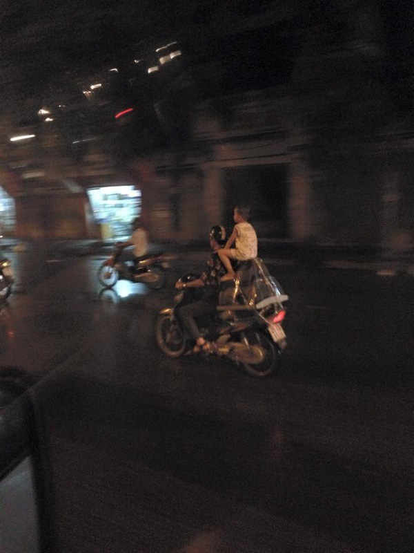 | Những bức hình chụp vào tối 24/5, trên đường Giải Phóng (Hà Nội) khiến dân mạng Việt không khỏi bức xúc với sự chủ quan, bất cẩn của một ông bố. Nguồn internet |