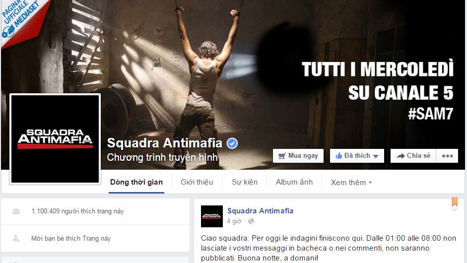 | Trang fanpage của phim "Antimafia Squad" có hơn 1 triệu người theo dõi |