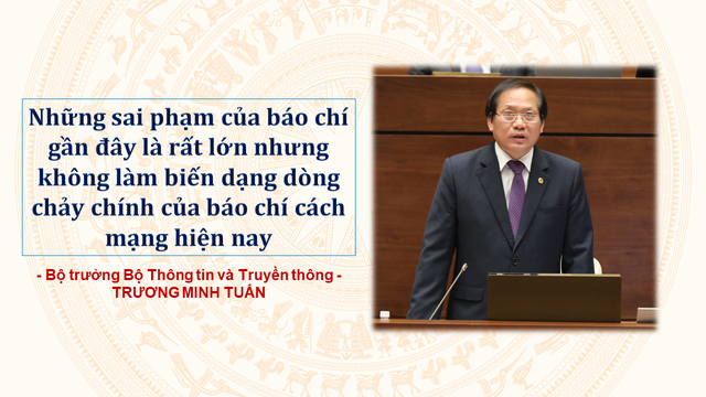 | Về vấn đề quản lý báo chí, Bộ trưởng Tuấn cho hay, tình trạng báo chí vi phạm sai sự thật là vấn đề nhức nhối. Tuy nhiên vai trò của báo chí từ trước tới nay đã thể hiện rõ ràng. Nếu không có báo chí, mọi mặt của đời sống xã hội không được phản ánh như hiện nay. Ảnh: Ảnh: VTV News |