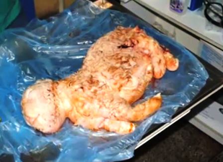 Được biết, chú cừu non này chào đời bằng phương pháp đẻ mổ. Nó đã chết ngay sau khi chào đời ít phút.