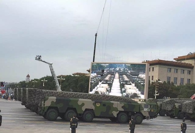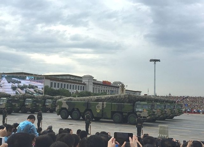 | Mẫu tên lửa đạn đạo tầm xa DF-26 có lẽ là ngôi sao sáng nhất tại lễ duyệt binh năm nay của Trung Quốc. Bắc Kinh tự hào DF-26 không có đối thủ trên thế giới. |