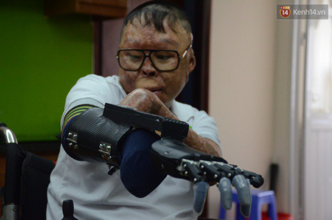 "Từ khi con tôi xảy ra vụ việc đến nay có lẽ đây là khoảnh khắc thứ 2 tôi không thể nào quên được. Đầu tiên là con tôi có thể tỉnh lại, nói chuyện với mọi người như hiện tại, và giờ là con tôi có được đôi bàn tay giả để vận động.