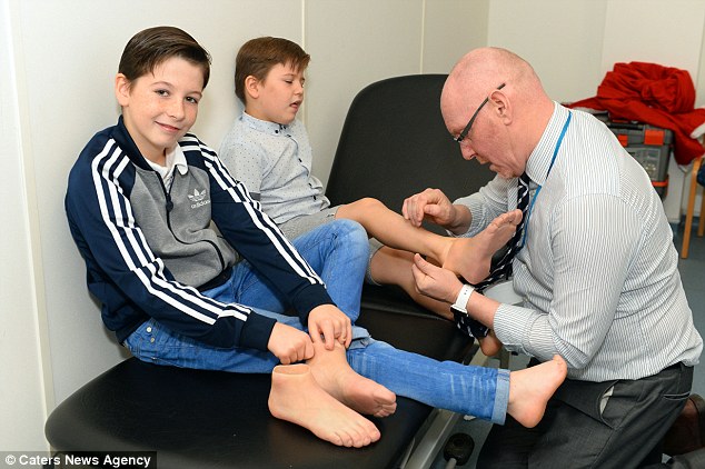 Nên đọcĐây là một trong những tình trạng hiếm hoi khi trên thế giới có khoảng 125 người mắc phải. Gia đình của Kaian và Callum Jarram không có điều kiện để có thể lắp chân giả cho hai em.