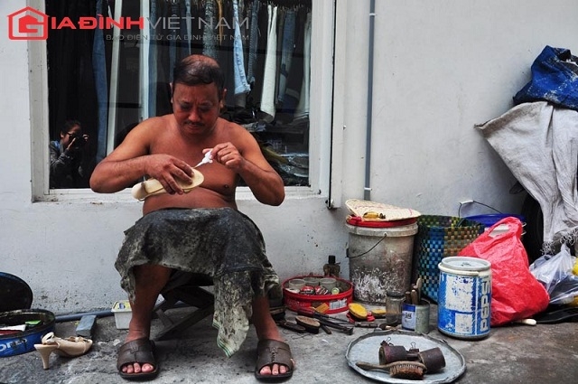 Công việc hàng ngày của người đàn ông này là sửa giày dép