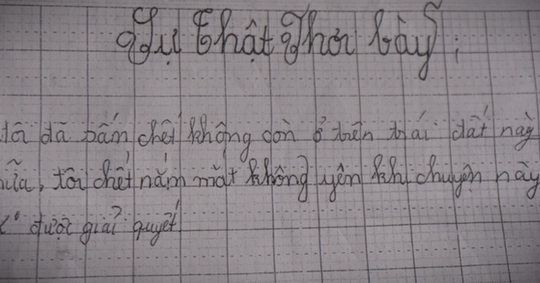 | Lá thư tuyệt mệnh của bé K. Ảnh: Người lao động |