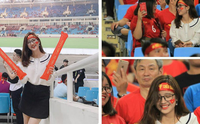 | Nữ cổ động viên đeo kính ở Mỹ Đình. |