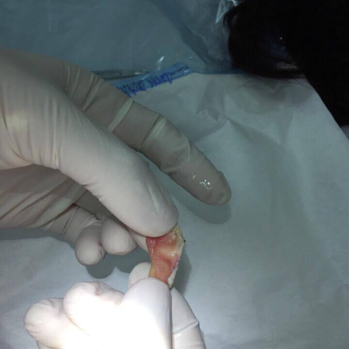 Ngay sau khi xảy ra sự việc, chị T. đã nhanh chóng mang phần tai bị cắn đứt dài khoảng 2cm đến bệnh viện đa khoa tỉnh Hải Dương với hi vọng nối lại được.