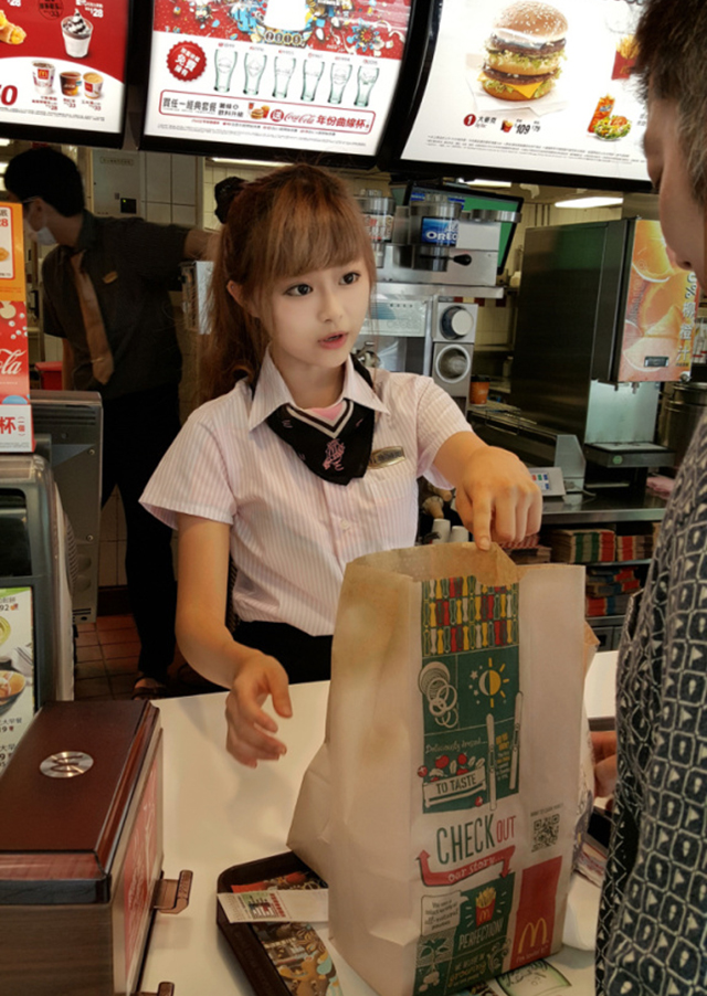 Nữ nhân viên phục vụ trong cửa hàng McDonald tại Đài Loan đang gây sốt Cộng đồng mạng vì vẻ ngoài quá xinh đẹp sau khi những bức hình của cô được đăng tải. Nhiều người còn ưu ái gọi cô gái trẻ này là "Nữ thần McDonald".