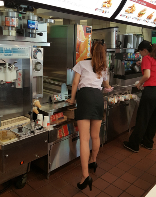 Đứng sau quầy phục vụ trong chiếc áo đồng phục màu hồng, chiếc khăn thắt duyên dáng trên cổ áo cùng đôi giầy cao gót, Wei Han Xu tỏa sáng không chỉ ở McDonald mà còn trên khắp Đài Loan.
