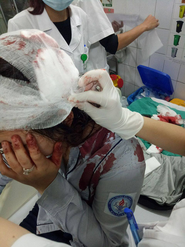 Nên đọc“Phát hiện sự việc, nhà trường đã đưa nữ sinh K.C đến bện viện Bạch Mai cấp cứu trong tình trạng đa chấn thương. BGH, cô chủ nhiệm đều đến viện túc trực. Hiện tại, vào lúc 19h tối 16/3, cô chủ nhiệm của em K.C vẫn đang theo dõi tình hình học sinh này cùng người nhà em tại bệnh viện”, cô Vũ nói và cho biết em C. bị gãy tay, đầu cũng phải khâu mấy mũi nhưng chụp CT thì không có vấn đề gì.