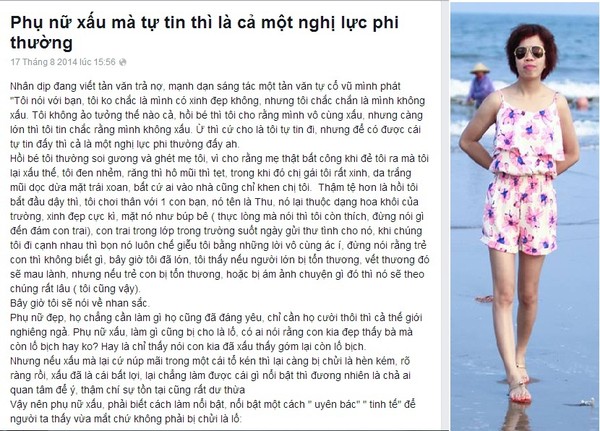 Ngay giữa tâm bão dư luận, cô gái 27 tuổi đã đăng đăng note về phụ nữ xấu và tự tin chia sẻ: "Đây là lúc cần nghị lực của gái xấu!"
