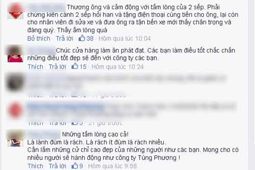 Câu chuyện sau khi được đăng tải đã nhận được rất nhiều sự quan tâm và chia sẻ. Hầu hết các thành viên Cộng đồng mạng đều cảm động trước câu chuyện của ông cụ và nghĩa cử cao đẹp của cửa hàng điện thoại Tùng Phương.