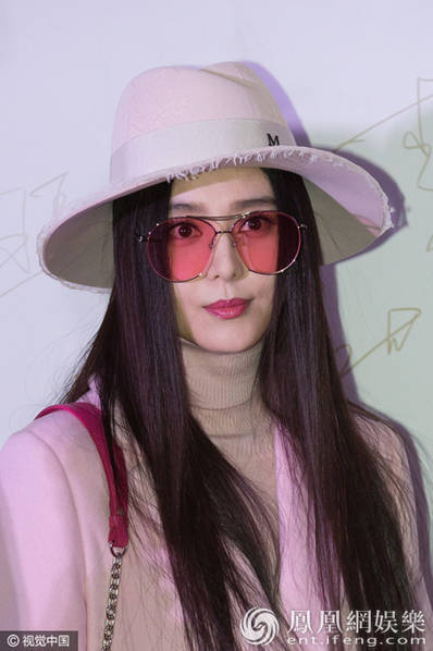 | Diện áo khoác hồng, Phạm Băng Băng còn "trang bị" thêm đôi mắt kính hồng và mũ hồng cho đủ bộ |
