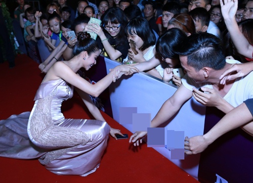 Đặc biệt, hành động Phạm Hương cúi người nhặt điện thoại của một fan vô tình làm rơi đã nhanh chóng thu hút truyền thông và nhận được lời khen của dư luận.