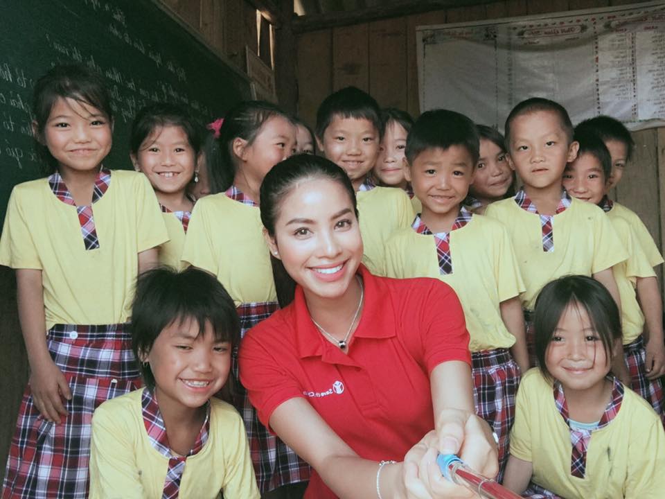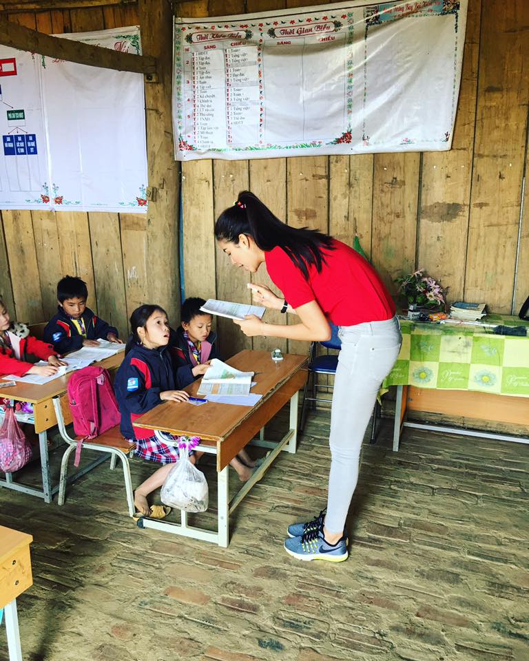 Phạm Hương vừa có chuyện thiện nguyện ở Điện Biên, người đẹp dạy trẻ em dân tộc thiểu số tiếng Việt nhằm thúc đẩy phát triển giáo dục.