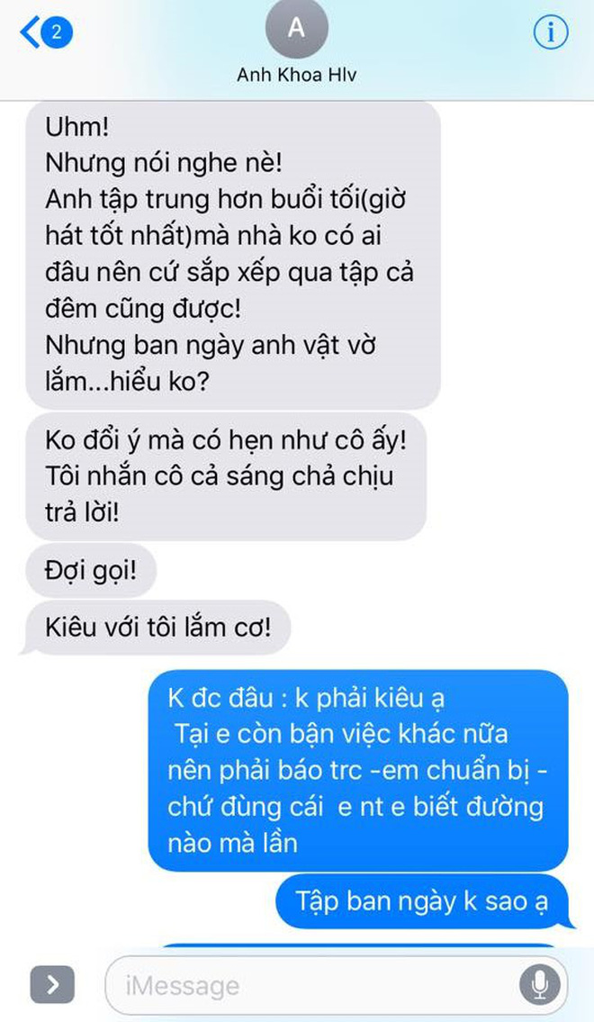 Theo nội dung tin nhắn Phạm Lịch chia sẻ cho thấy, khi cô đòi yêu cầu gặp mặt để trao đổi rõ ràng mọi chuyện có cả nhà sản xuất và vợ nam ca sĩ thì Phạm Anh Khoa đã từ chối. Sau đó, khi Phạm Anh Khoa còn dành nhiều lời lẽ không hay dành cho Phạm Lịch khi cô thẳng thắn lên án lối sống của nam ca sĩ.