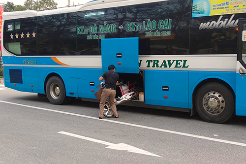 | Sau khi bị cơ quan chức năng yêu cầu, người tài xế này mới lấy xe đạp điện từ gầm xe khách ra ngoài - Ảnh: Internet |