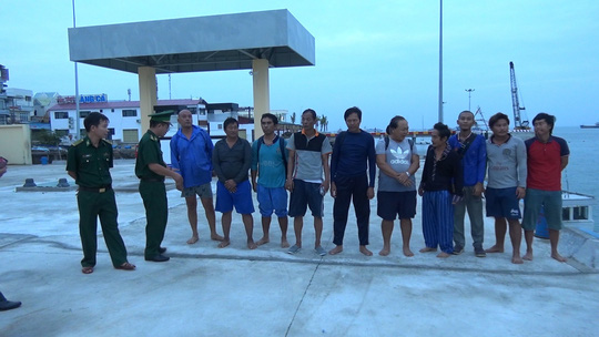 Biên phòng tỉnh Bà Rịa-Vũng Tàu tiếp nhận 10 thuyền viên nước ngoài từ tàu cá BV 98869 TS. Ảnh: Người lao động |