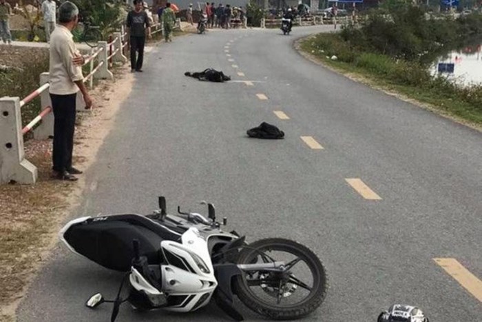 Người dân đi đường bàng hoàng phát hiện một nam thanh niên đi xe máy nằm trên đường, cạnh người nạn nhân có vết máu.
