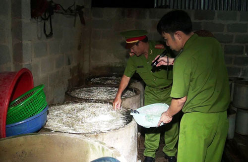 | Cơ quan chức năng đang kiểm tra giá ngâm hóa chất. Ảnh: Vietnamnet |
